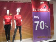 Tässä valokuvassa on viikolta 29. 2011 alennusjuliste rodoslaisesta vaatekaupan näyteikkunasta. Juliste kertoo koruttomasti ettei kauppa käy. Rodoksen turistisesongilla täyttivät enemmistönä viina-, viini ja olutravintolapaikat ja tavernat nuorisoturistit, siis onko palattu ikään kuin Keihäsmatkojen aikakauden turistikulttuuriin?