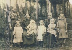 Tässä kuvassa on kaksi ”kanadanleskeä” pienten lasten kanssa 1930-luvulla näiden perheiden toimeentulo oli pitkälti miesten rahakirjeiden varassa.