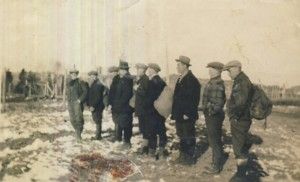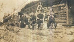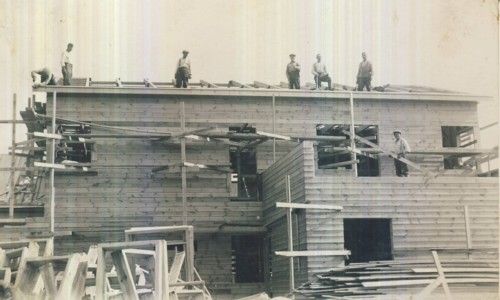 Tässä kuvassa on Kanadassa hankitulla pääomalla perustetun ralkennustyöryhmän yksi rakennuskohde; kuvan takana on teksti: ”Nivalan seurantalon rakennusmiehistä v:ta 1936. Nyk. lastenkotina.